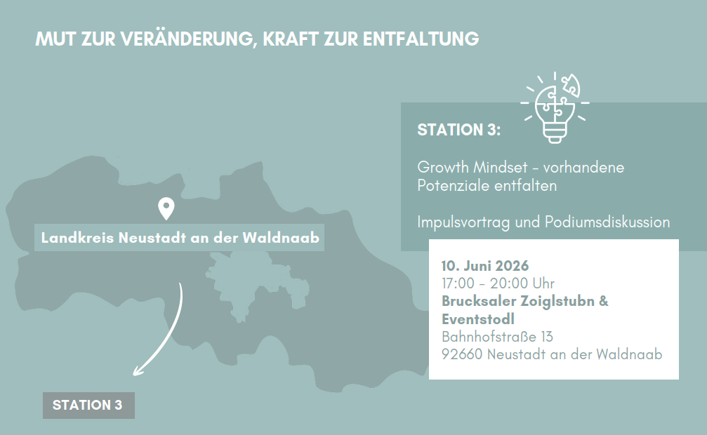 Am 10. Juni in Neustadt an der Walndaab steht alles im Zeichen des Wachstums. In einem Impulsvortrag wird von The Ringsight zunächst gezeigt, wie ein Growth Mindset Unternehmen und Teams voranbringt. Im Anschluss berichten Unternehmerinnen und Unternehmer aus der Region in einer lebendigen Podiumsdiskussion von ihren Erfahrungen und geben Insights, wie Ihnen eine wachstumsorientierte Denkweise hilft. Entdecken Sie, wie Sie Potentiale entfalten und rechte Chancen nutzen!